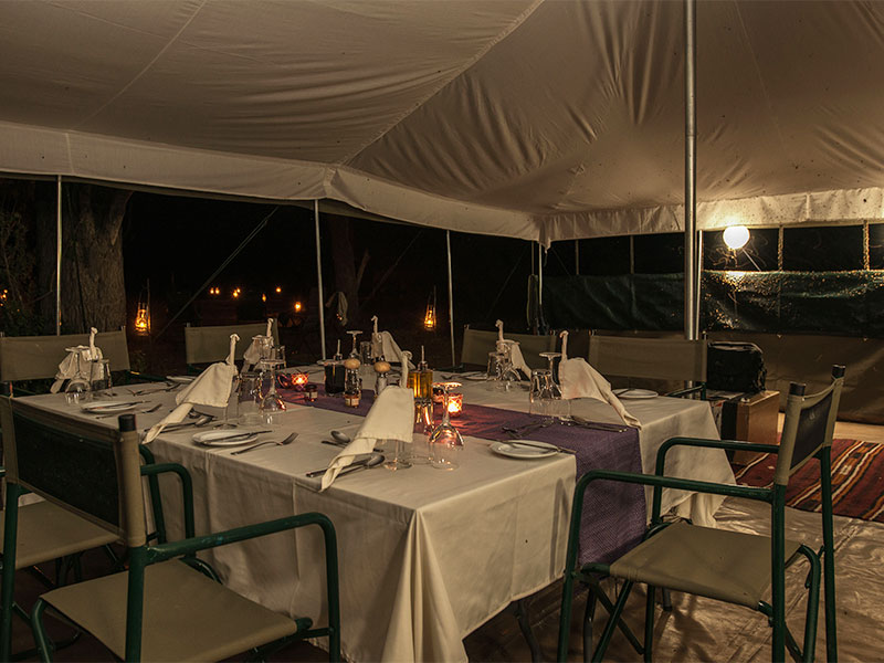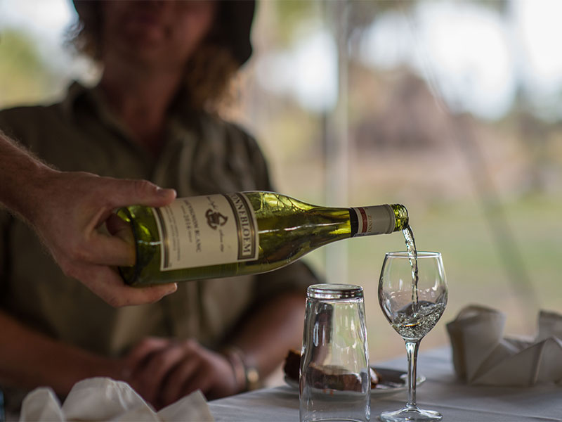 De lunch in de mess tent en het diner onder de sterren (3 gangen) worden geserveerd door ervaren en vriendelijk kamppersoneel. Gedurende de hele dag is in de volledig ingerichte bar koude drankjes, thee, koffie en drinkwater beschikbaar.
