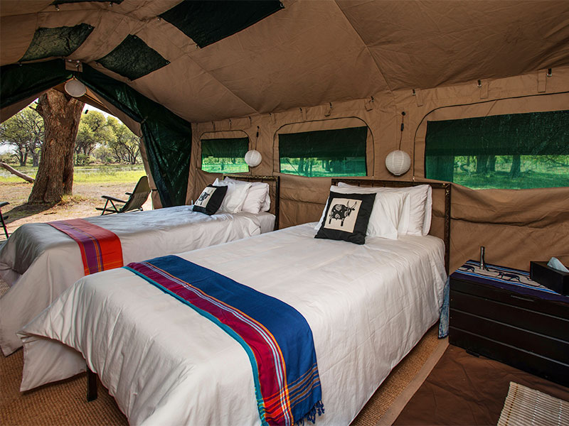 Alle tenten hebben comfortabele bedden, nachtkastjes, canvas kledingkasten en een en-suite badkamer met een toilet en een douche (‘bucket shower’). Voor de avonden is LED verlichting beschikbaar.