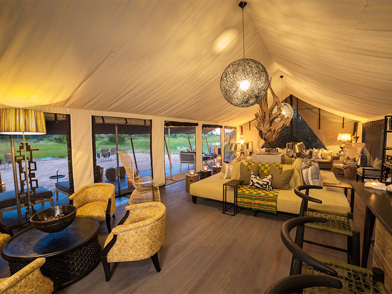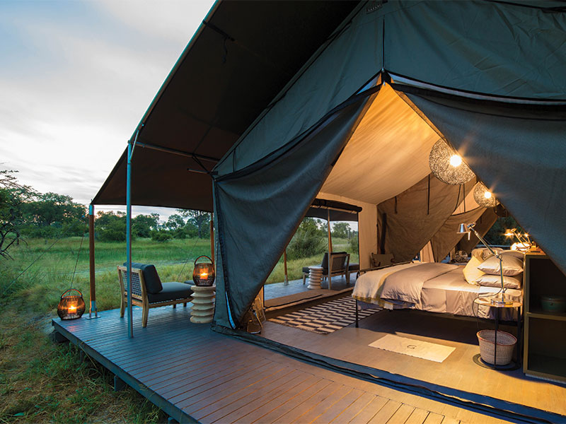 Het Gomoti Plains Camp is een luxe tentenkamp, gelegen aan de rand van het Gomoti rivierenstelsel in de Okavango Delta.