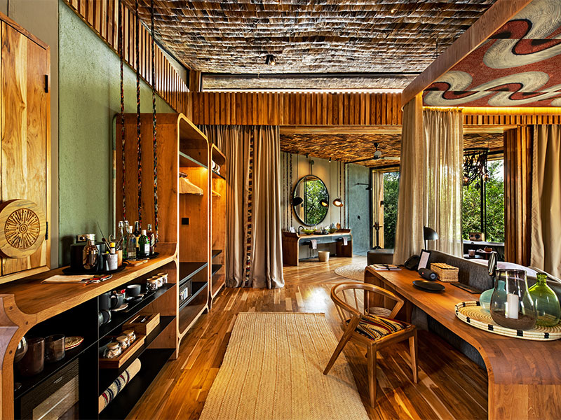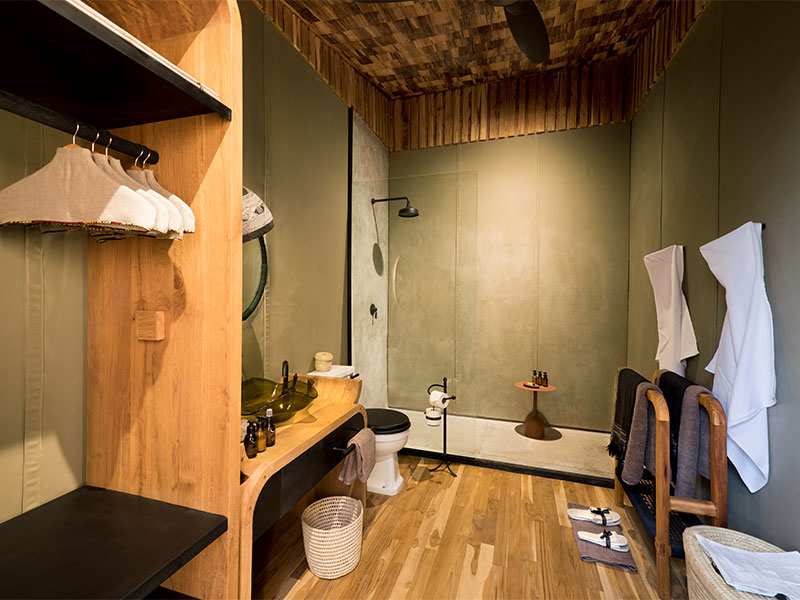 Elk van de 10 luxe suites (waarvan 1 familiesuite) beschikt over een enorm bed, een prachtig ingerichte badkamer met ligbad en binnen- en buitendouches, WiFi en een veranda met dompelbad.
