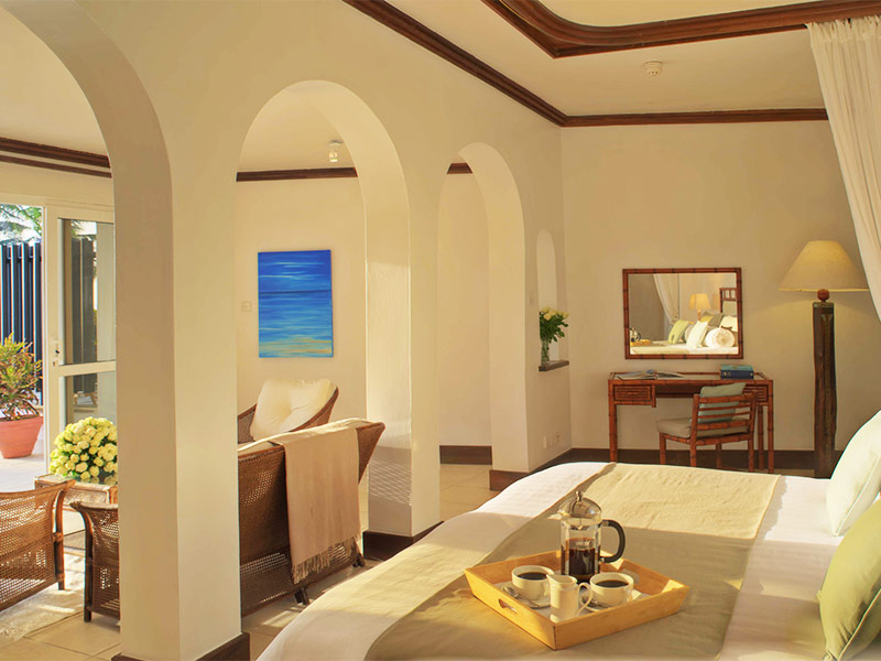 Zeer ruime kamers met verschillende indelingen, gesitueerd op de begane grond van de zuidelijke vleugel. In de noordelijke vleugel op de begane grond en de eerste verdieping. Vanaf deze kant heeft u direct uitzicht op het strand. Voor het gebouw is een groot grasveld waar u kunt zonnen. Allen kamers hebben een ruime en-suite badkamer met bad, douche en toilet, airco, ventilator, telefoon, minibar, haardroger, balkon of veranda en koffie- en theefaciliteiten.