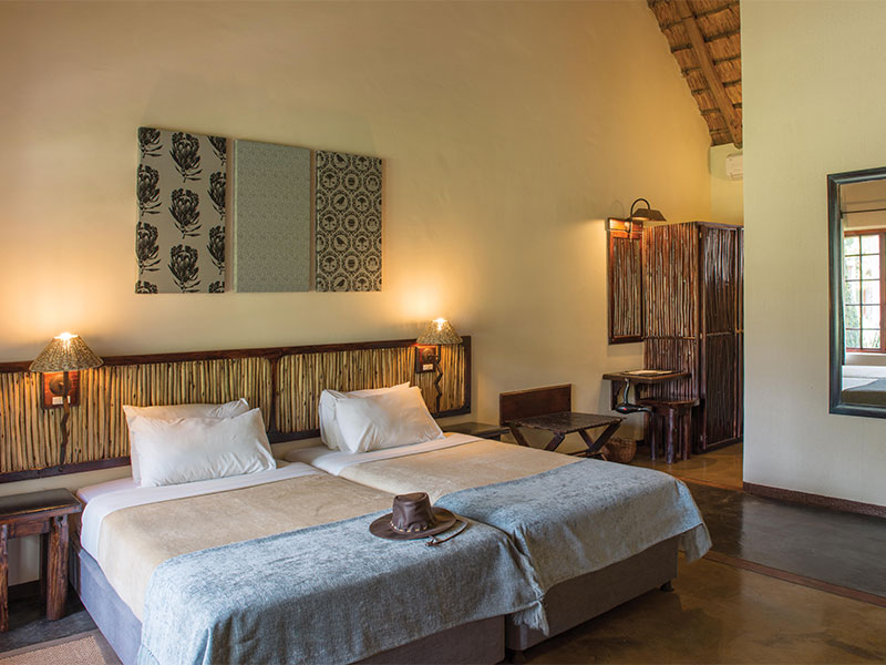 De lodge beschikt over 37 self-catering chalets en 54 kamers en-suite. De ruime kamers zijn smaakvol ingericht in een tijdloos “Out of Africa” thema. De chalets hebben geen airco; de River Chalets beschikken over een kitchenette.