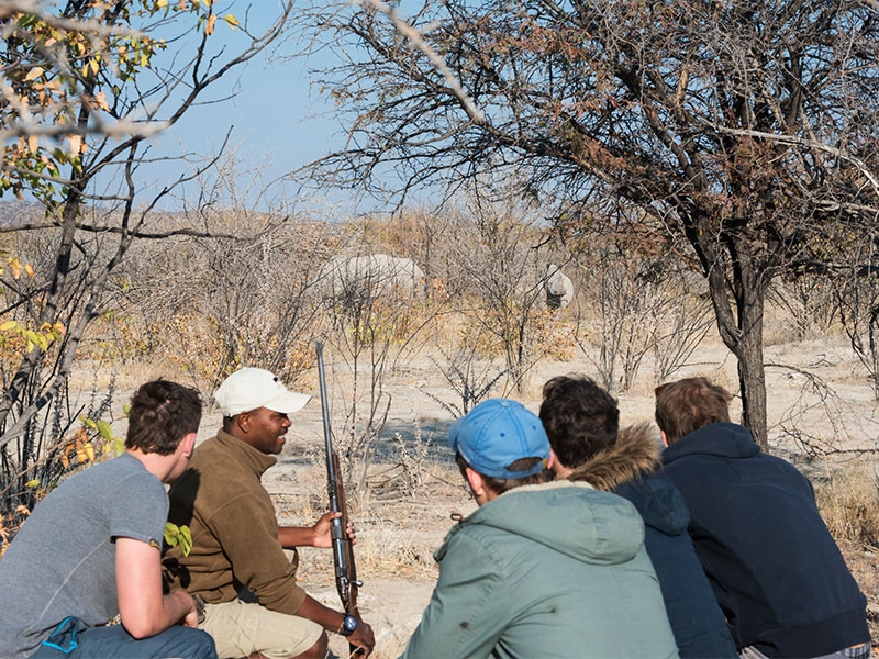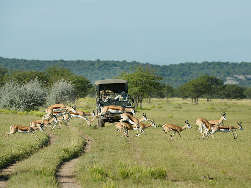 Ochtend- en middag game drives in Etosha National Park, ochtend, middag- en avond game drives (op verzoek) en wandelingen in het Ongava Game Reserve.