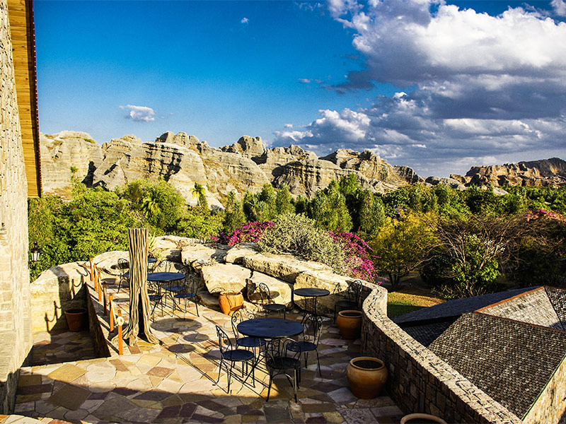 Hôtel le Relais de la Reine ligt tussen de rotsen en grenst aan het Isalo National Park. Het biedt een prachtig uitzicht op de omgeving.