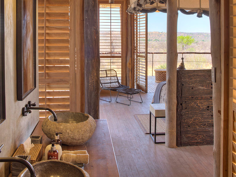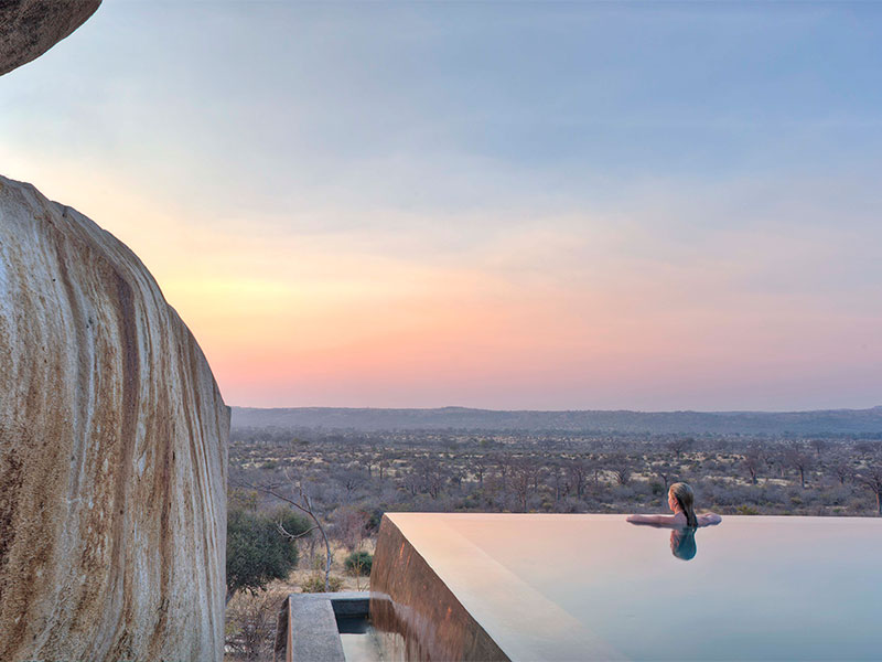 De 8 suites en 1 privé huis van Jabali Ridge liggen verborgen tussen de rotsblokken die om het kamp heen liggen. Een zwembad, een spa en tal van plaatsen om te relaxen zorgen voor een onvergetelijke tijd in de bush.