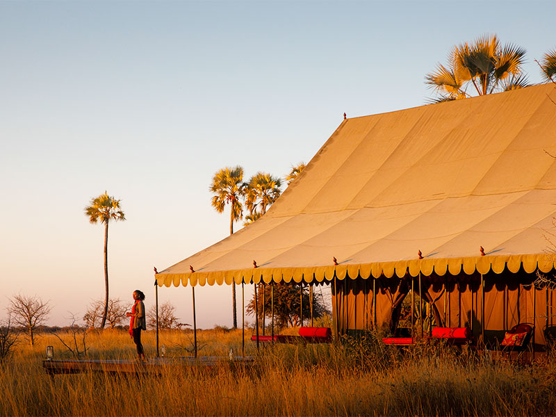 Jack's Camp is een luxe nostalgisch safarikamp in oude stijl (jaren ‘20) in de uitgestrekte zoutvlaktes van het natuurpark Makgadikgadi in de Kalahari.