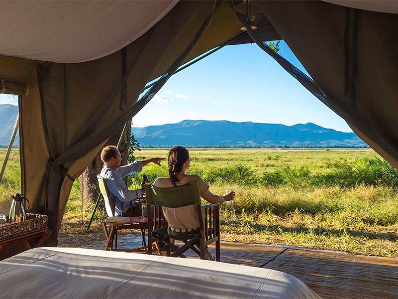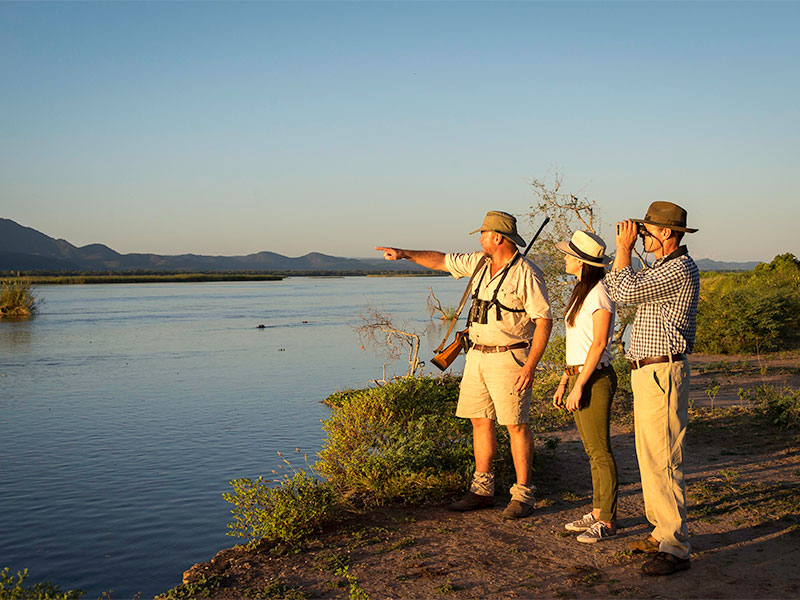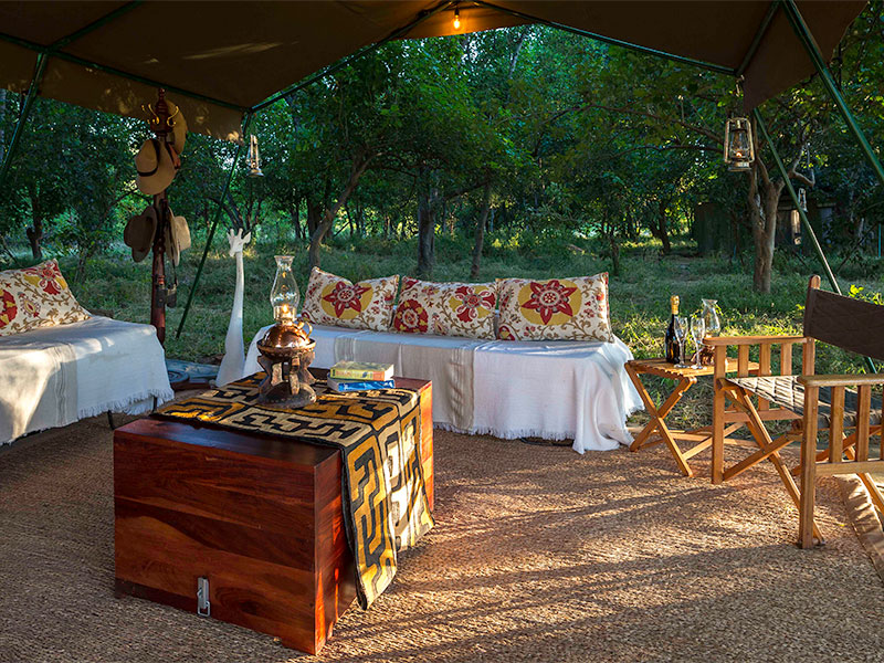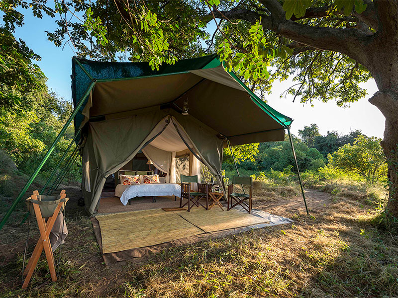 John’s Camp is een semi-permanent mobiel tentenkamp dat ieder jaar aan de oevers van de Zambezi rivier in Mana Pools wordt opgezet.