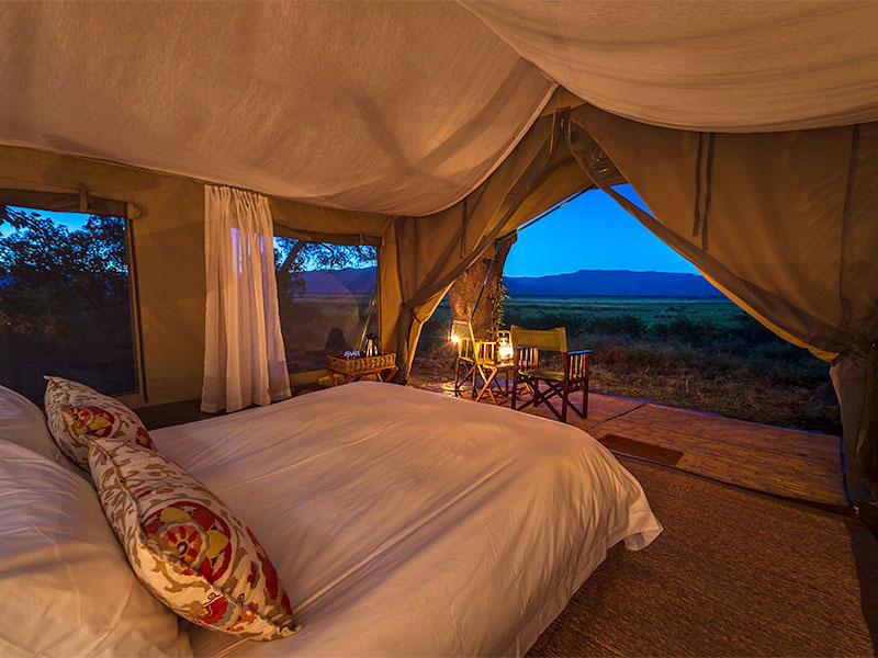 John’s Camp is genoemd naar de beroemde safarigids John Stevens. Het comfortabele kamp heeft 6 tenten in Meru-stijl. Alle tenten hebben een eigen badkamer, een bush toilet en een bush douche. Verder heeft het kamp een ruime open mess tent dat ook als eetkamer wordt gebruikt.
