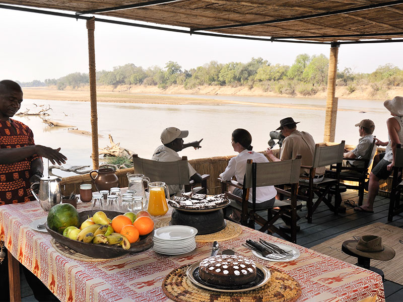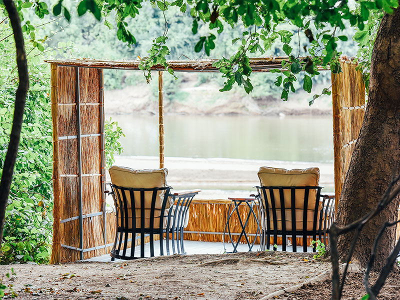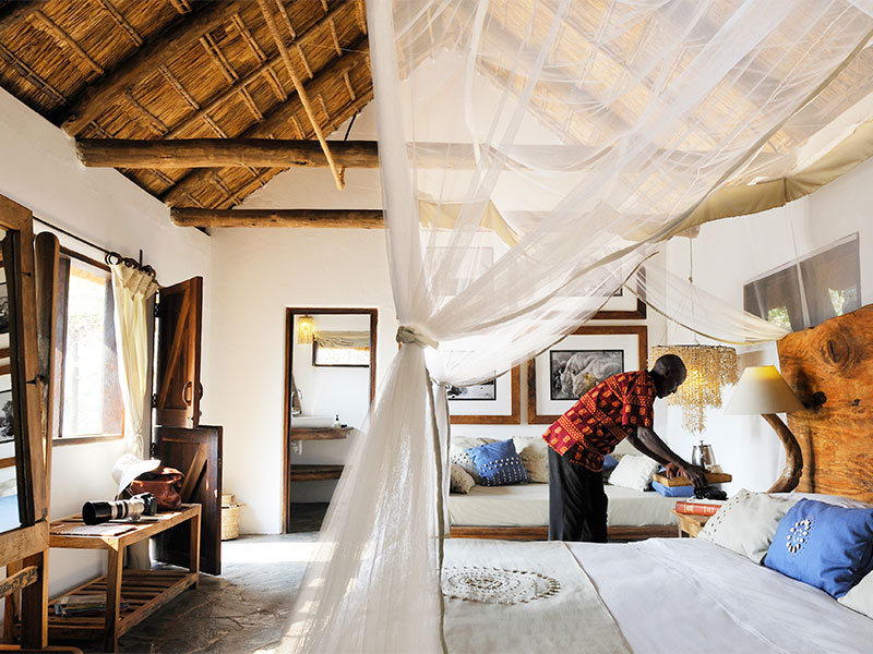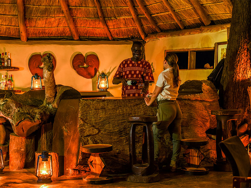 De 6 chalets hebben en-suite faciliteiten, zijn goed geventileerd, verlicht met zonne-energie en hebben uitzicht over de Luangwa River. Elk chalet heeft ook een romantische buitenbad onder de ebbenbomen en een eigen patio met een dagbed en een zithoek. Vanaf de grote houten veranda die over de rivier is gebouwd kunt u op de eerste rang genieten van het wild dat bij de rivier komt drinken, het geluid van de nijlpaarden en de olifanten die dagelijks de rivier oversteken..