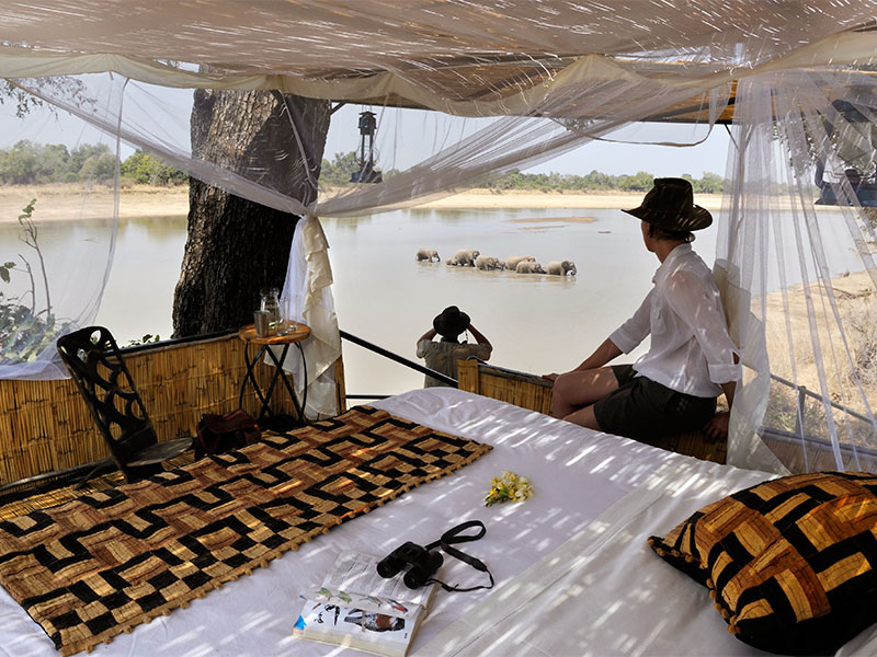De Elephant Hide is één van de meest bijzondere overnachtingsplekken in Zambia. U slaapt hoog op een platform tussen de bomen met uitzicht op de Luangwa rivier, met onder u een eeuwenoud olifantenpad. Al generaties lang komen olifanten naar deze plek voor een heerlijk modderbad en u kunt hier vanuit uw boomhut getuige van zijn. Op de begane grond bevindt zich het bush toilet; het open slaapplatform bevindt zich hierboven en heeft een queen size bed met warme dekbedden, een muskiettennet, lantaarns en na enkele treden is er een wastafel om u op te frissen. Een gewapende beveiliger verblijft in uw nabijheid om uw veiligheid te waarborgen.