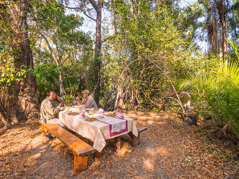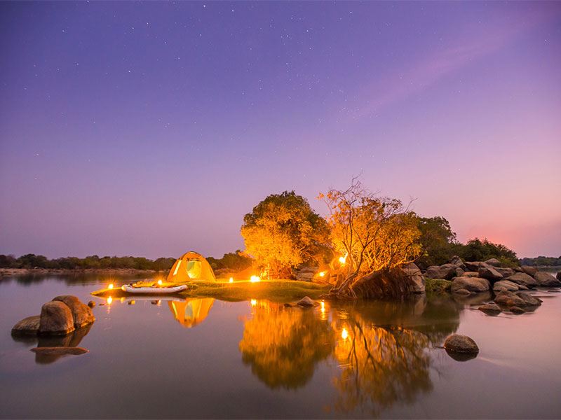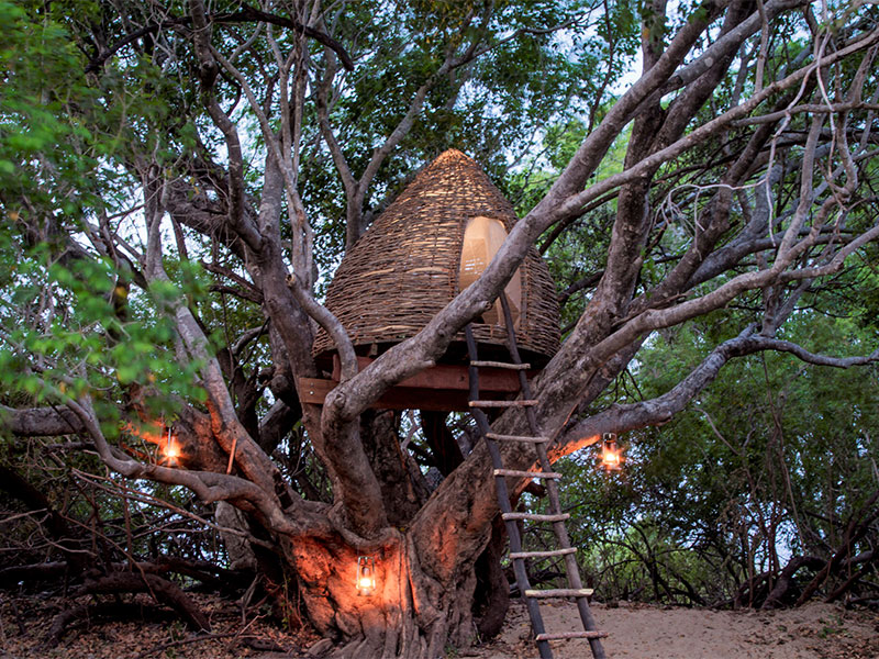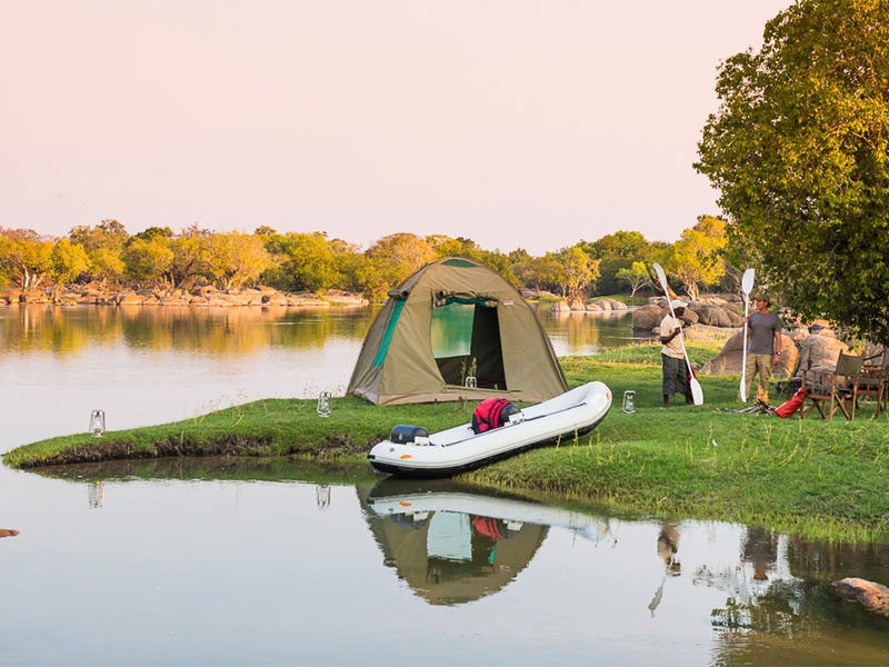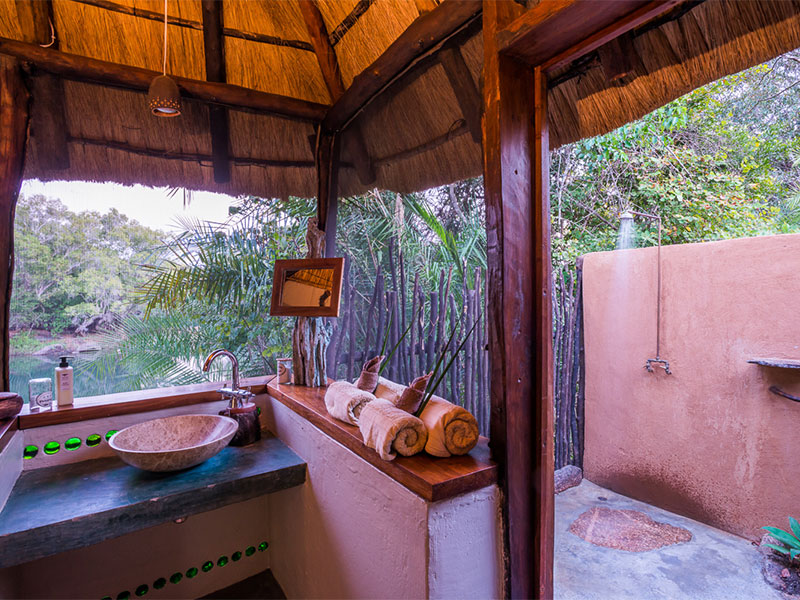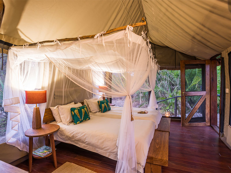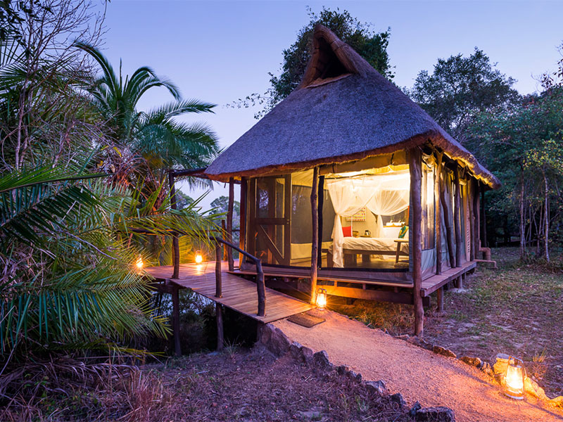 De lodge biedt accommodatie in 6 tented chalets, 1 familietent en 3 kampeerterreinen. De tenten met rieten overkapping zijn voorzien van uitstekende bedden met klamboe, een-suite badkamer met douche en toilet en een buitendouche. De verlichting werkt op zonne-energie. Het Honeymoon chalet heeft tevens een bad in de buitenlucht.