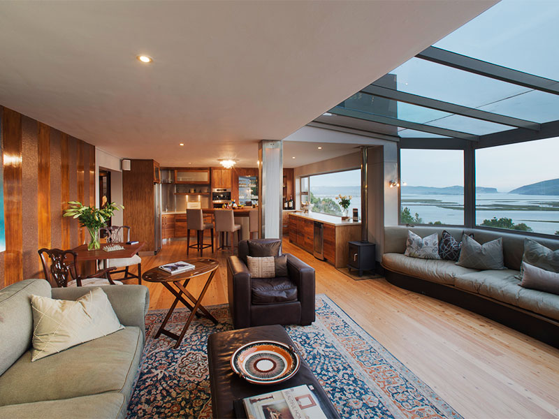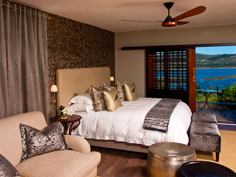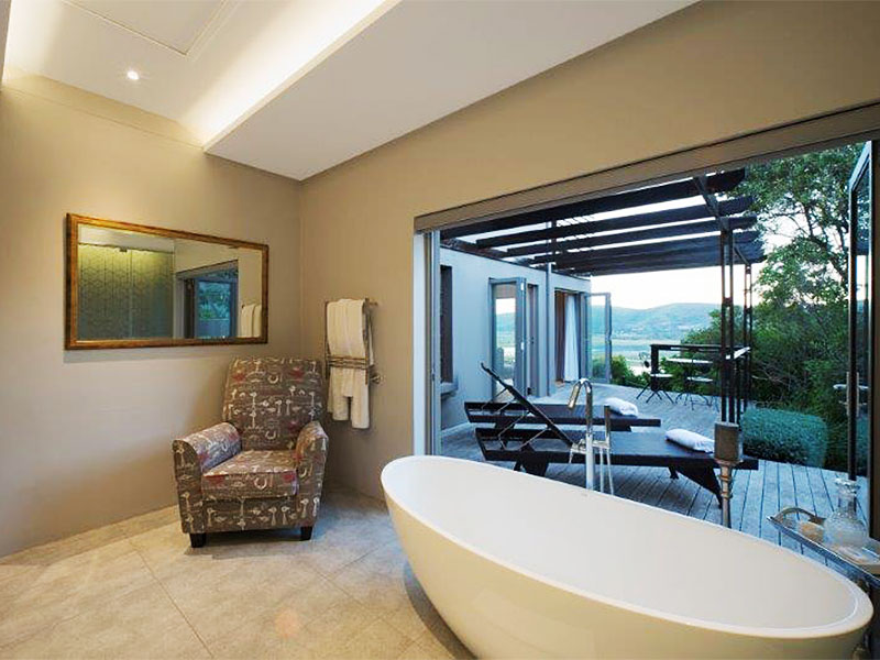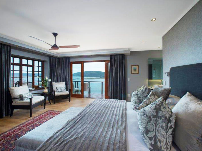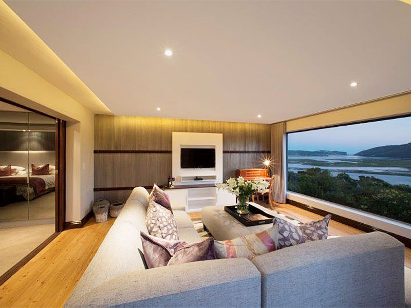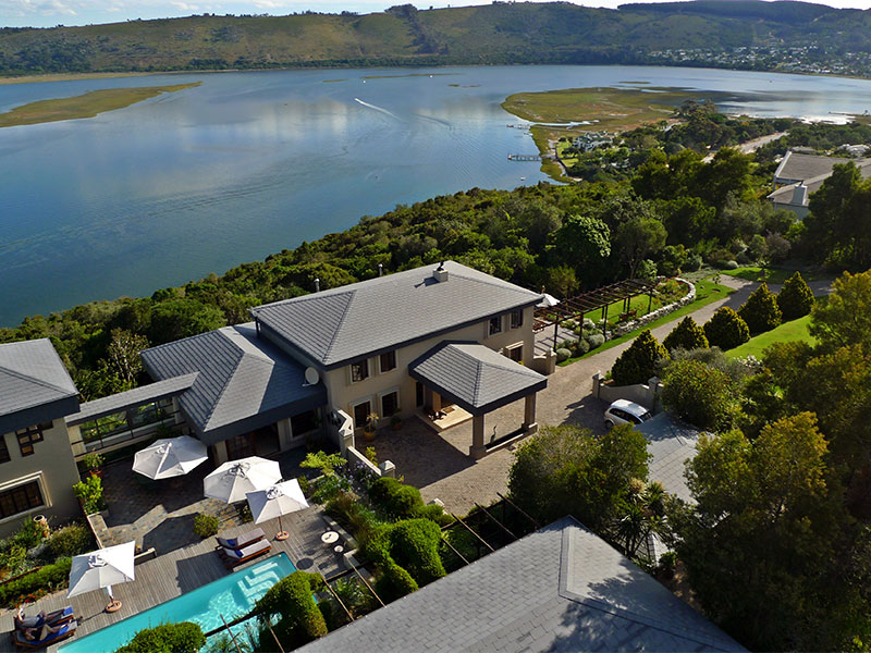 Kanonkop House heeft een adembenemend uitzicht op de lagune van Knysna en de gigantische zandstenen kliffen die de ingang van de Indische Oceaan vormen (de beroemde ‘Knysna Heads’).