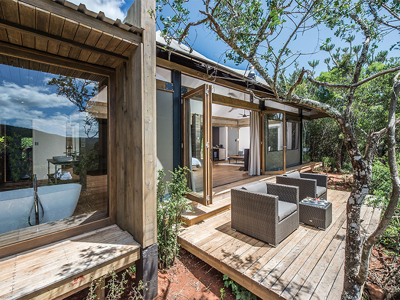 De 5-sterren tented lodge Settlers Drift is gelegen in het malariavrije privé wildreservaat Kariega Game Reserve op circa anderhalf uur rijden van Port Elizabeth.