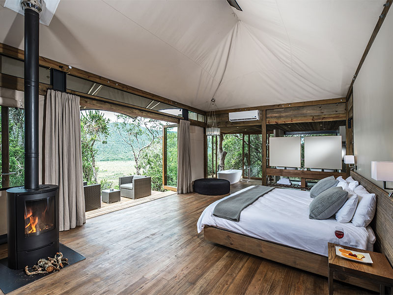 De 9 ruime luxe tented suites hebben moderne voorzieningen, zoals een ruime slaapkamer en een woonkamer. Elke tent heeft een eigen badkamer met een binnen en een buitendouche. De privé veranda biedt een prachtig uitzicht over de bush en de Bushmans rivier.