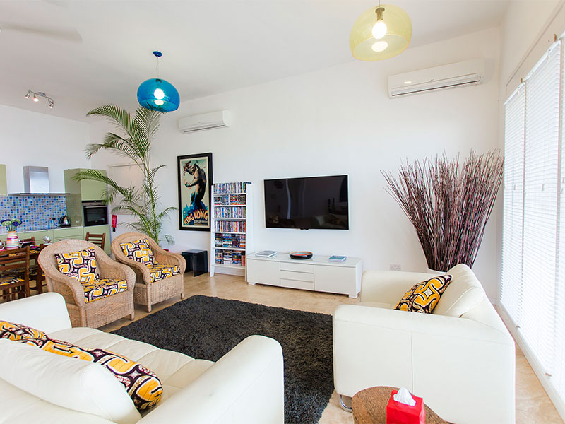 De villa heeft een volledig ingerichte keuken met grote Amerikaanse koelkast, en biedt tevens een flatscreen-tv, iPad en Bluetooth speakers.