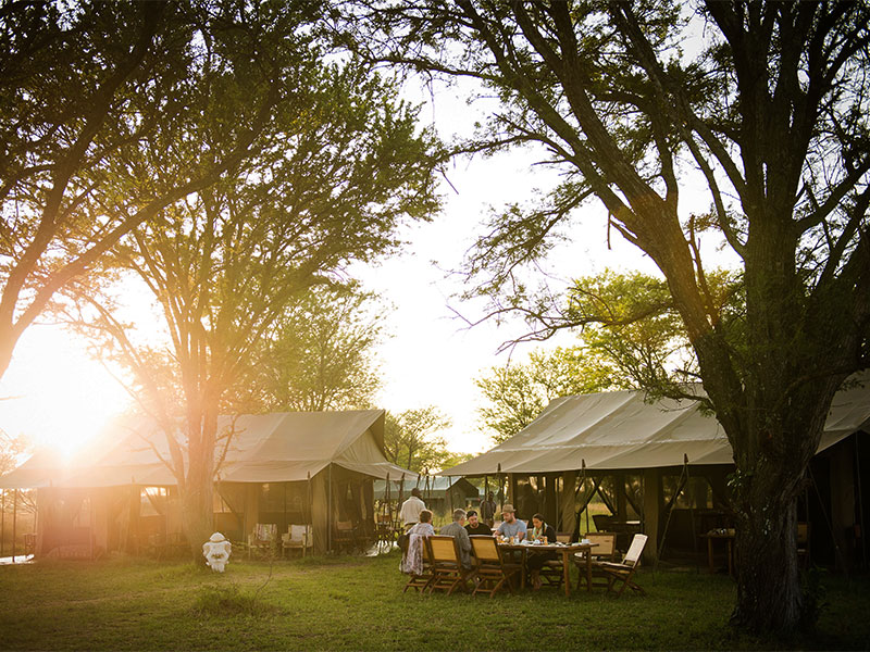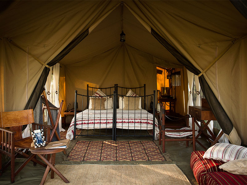 Het kamp ademt de sfeer van vervlogen tijden maar biedt de gemakken van vandaag-de-dag. In de Victoriaanse tijd was dit de enige manier om op een luxe en comfortabele manier de binnenlanden van Afrika te bewonderen. U slaapt in ruime, 2-persoons safaritenten met comfortabele bedden en en-suite faciliteiten (bucket shower). Een mooi gedecoreerde tafel met kaarslicht en verzorgde maaltijden in de centrale tent maken het geheel tot een onvergetelijke ervaring.