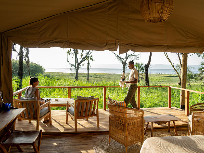 De accommodatie beschikt over 8 ruime tented chalets, elk ontworpen met lokale materialen om in harmonie te zijn met de omgeving. De chalets zijn voorzien van comfortabele bedden met klamboes, een en-suite badkamer met een warme douche, en een privéveranda die uitkijkt over het serene meer. Dankzij zonne-energie heeft het kamp stroom en warm water, wat het verblijf zowel duurzaam als comfortabel maakt.