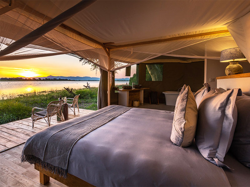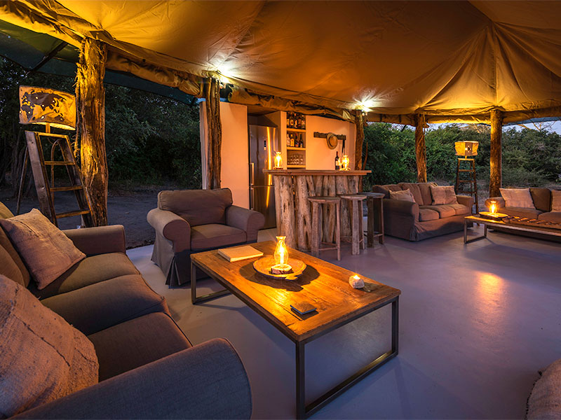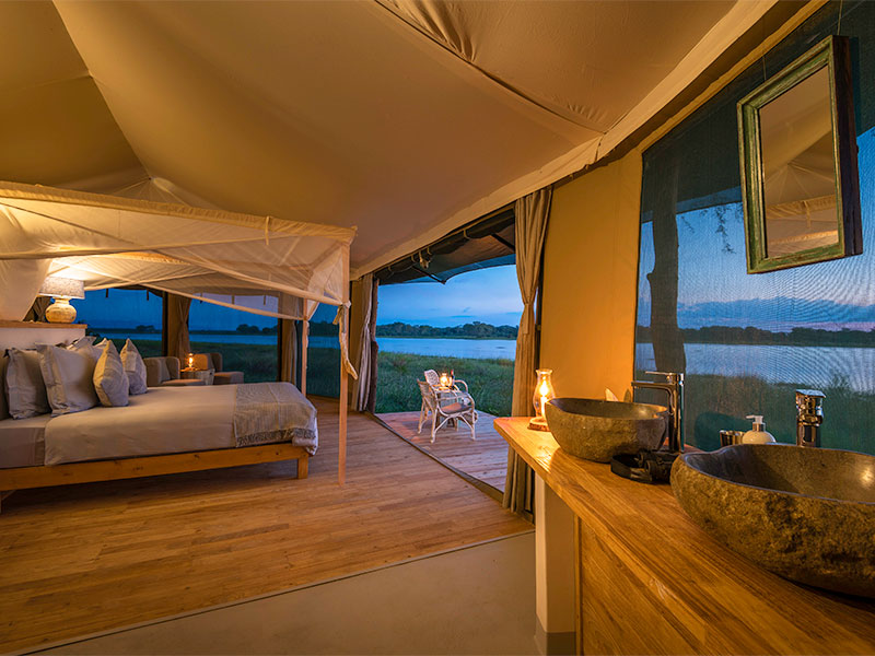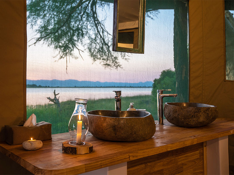 De 4 ruime en moderne safaritenten hebben allemaal een eigen badkamer met een ligbad en een buitendouche. De milieuvriendelijke airconditioning (ultramodern en milieuvriendelijk koelsysteem voor het bed in de klamboe) draagt bij aan het comfort van dit intieme kamp.