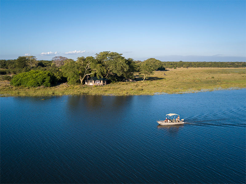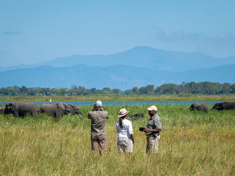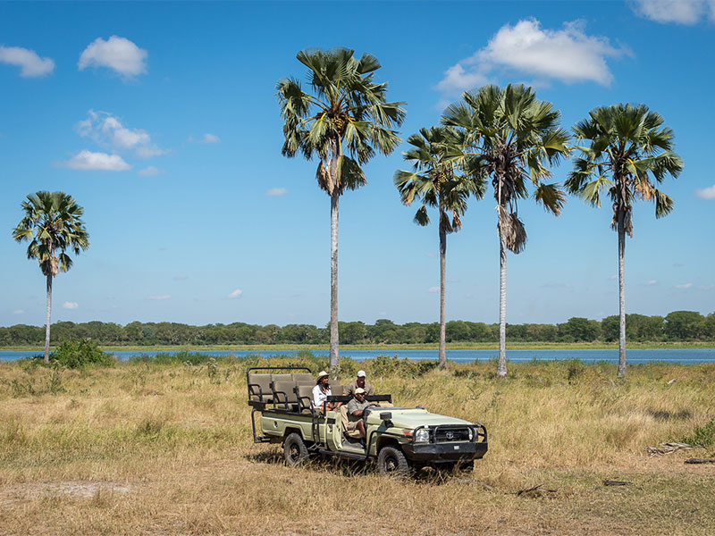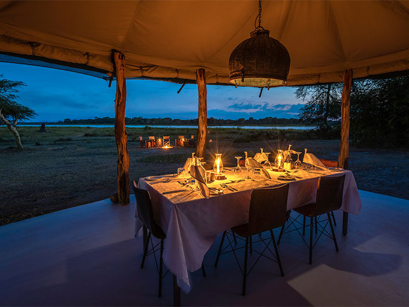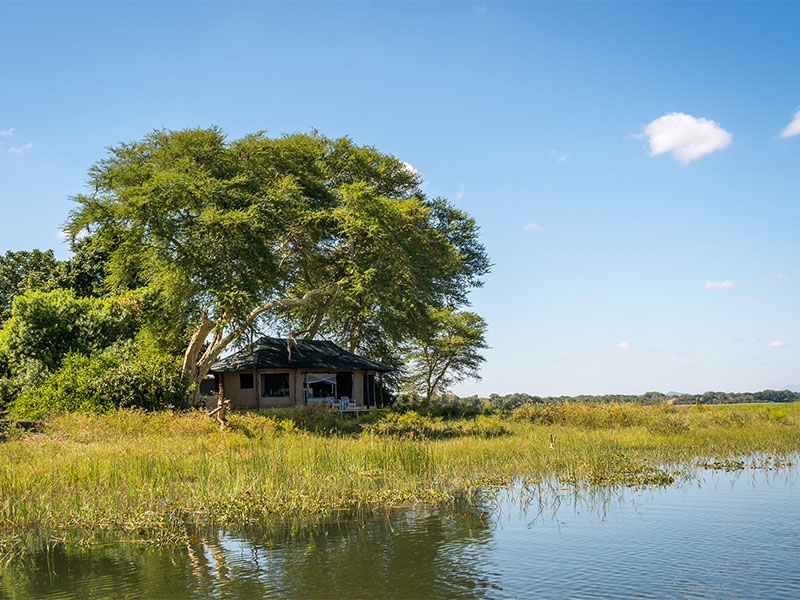 Kuthengo Camp ligt tussen de bomen op een grote open vlakte die zich uitstrekt tot aan de Shire-rivier in het Liwonde National Park.