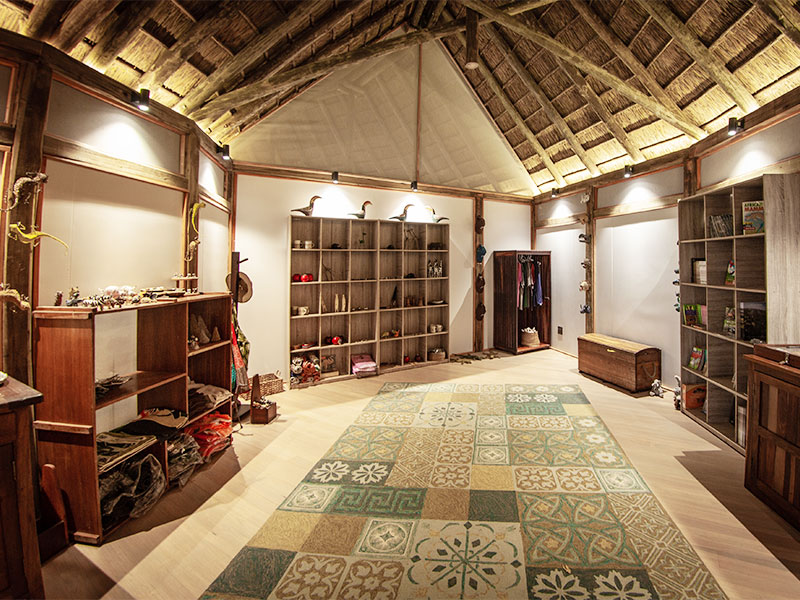 Het hoofdgedeelte heeft een zwembad, een bar en een lounge, evenals een curiosawinkel. Vlak voor het hoofdgedeelte is een kampvuur plaats waar elke dag een licht ontbijt wordt geserveerd voordat u op weg gaat, en waar na het avondeten verhalen worden verteld.