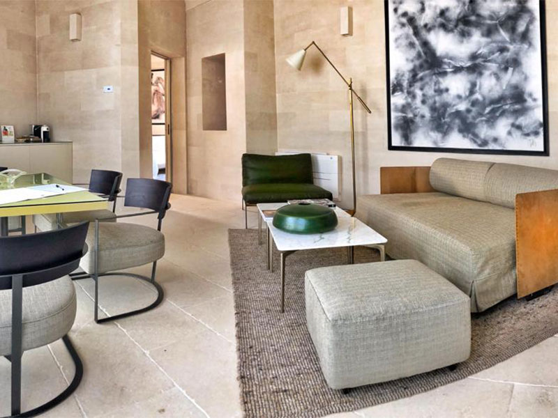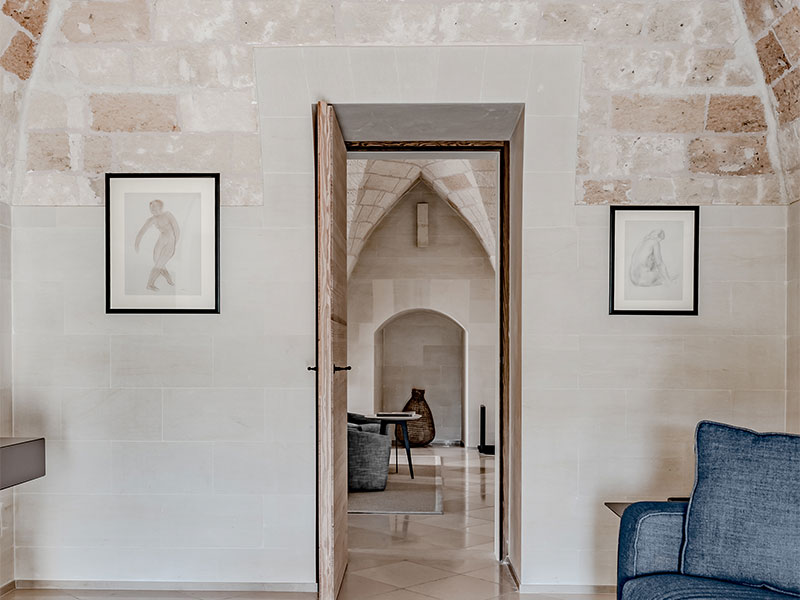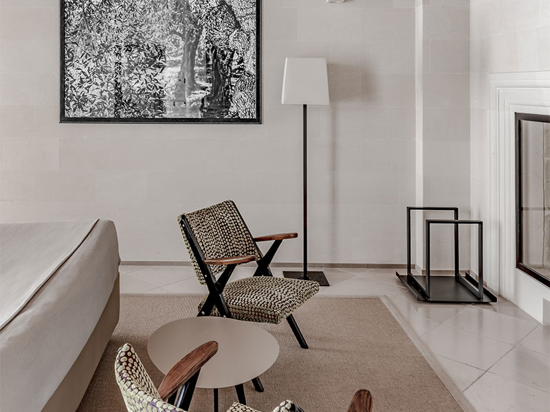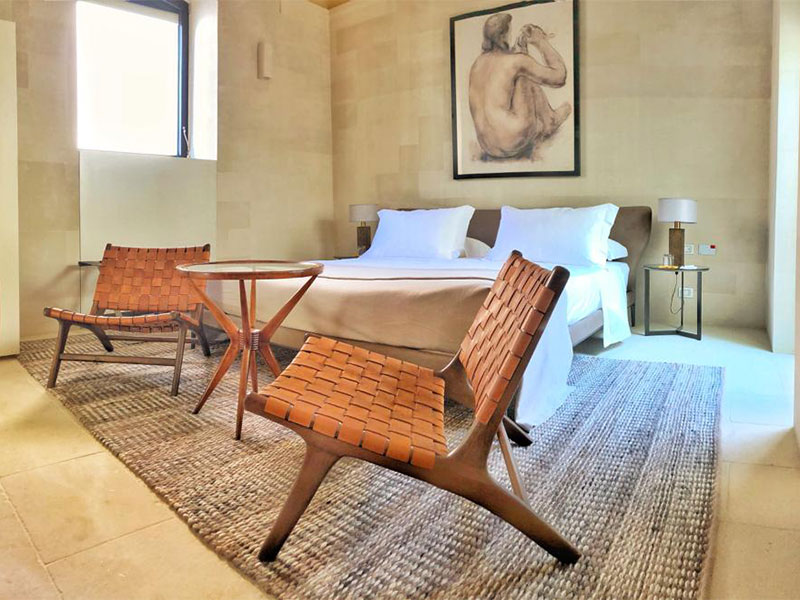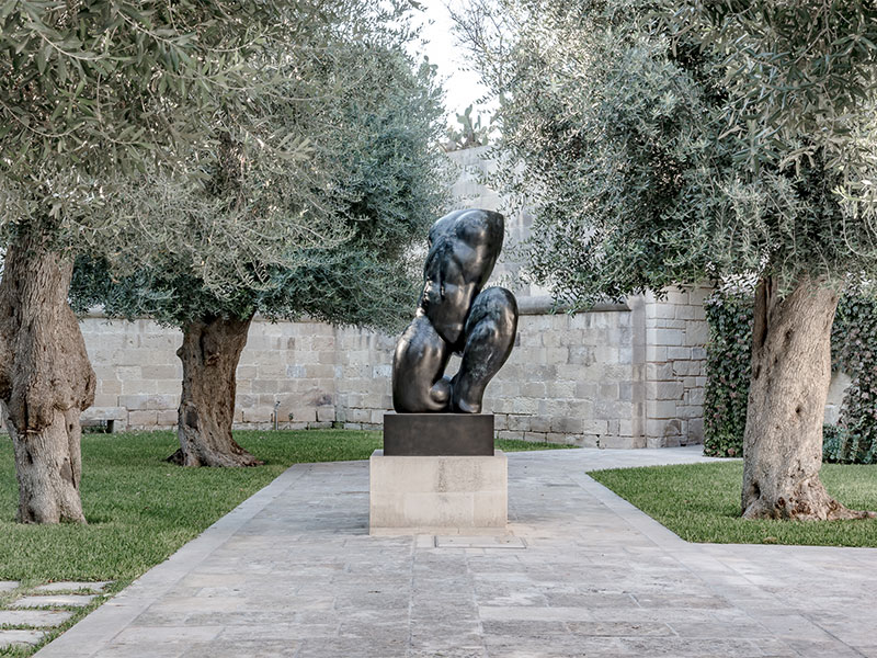 Binnen verwelkomen vijftien ruime kamers en de drie recentere Suites à côté de gasten van het hotel in zijn verfijnde elegantie, versterkt door gewelfde plafonds, de kenmerkende honingkleur van Lecce's kalksteen en talrijke kunstwerken. In de grote tuin, beschut door de oude muren eromheen, bieden sinaasappelbomen en eeuwenoude olijfbomen schaduw aan de bar, het lineaire zwembad en de sculpturen van de twee Franse kunstenaars.