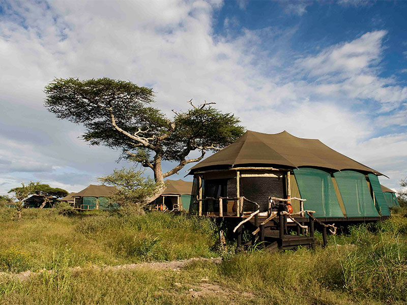 Het kamp is omgeven door acacia bomen en telt in totaal 20 ruime, luxe permanente tenten welke van alle gemakken zijn voorzien. Elke tent staat op een houten platform, heeft een en-suite badkamer met bad en buitendouche, een veranda met prachtig uitzicht over dit gebied.