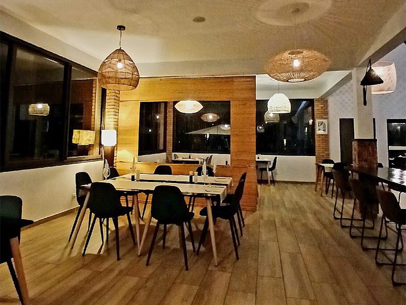 Het restaurant biedt elke ochtend een internationaal buffet, en lunch en diner à la carte, geserveerd op de panoramische terrasruimte met sfeervolle lounge en bar.