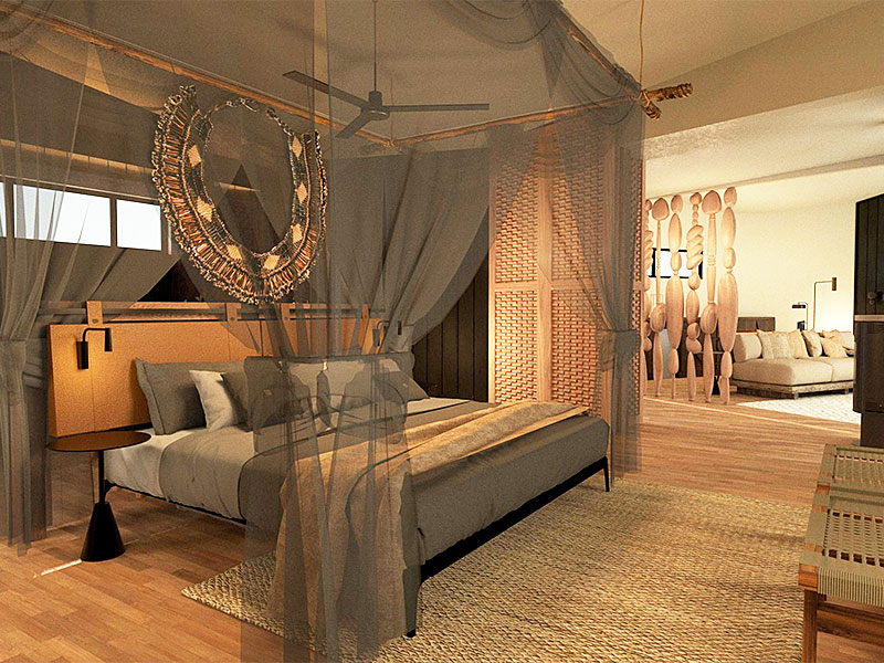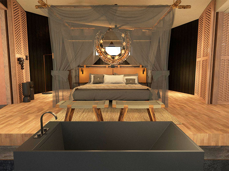 De lodge telt in totaal 20 suites: 16 standaard suites en 2 twee‑slaapkamer suites die ideaal zijn voor gezinnen of vrienden. Elke suite is royaal en licht, met grote panoramische ramen en een ‘geheim’ dagbed‑hoekje. Ze zijn uitgerust met een kingsize bed, houtkachel, warme winter‑dekbedden en kruiken – perfect tegen de koele nachten op de hoogvlakte. De en-suite badkamer bevat een vrijstaand ligbad, douche, dubbele wastafels en toilet. Suites beschikken ook over een zithoek, minibar, kluis, koffie‑/theefaciliteiten, badkamer ‑ en loungevoorzieningen.