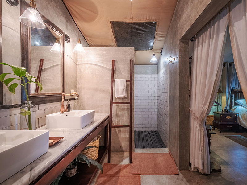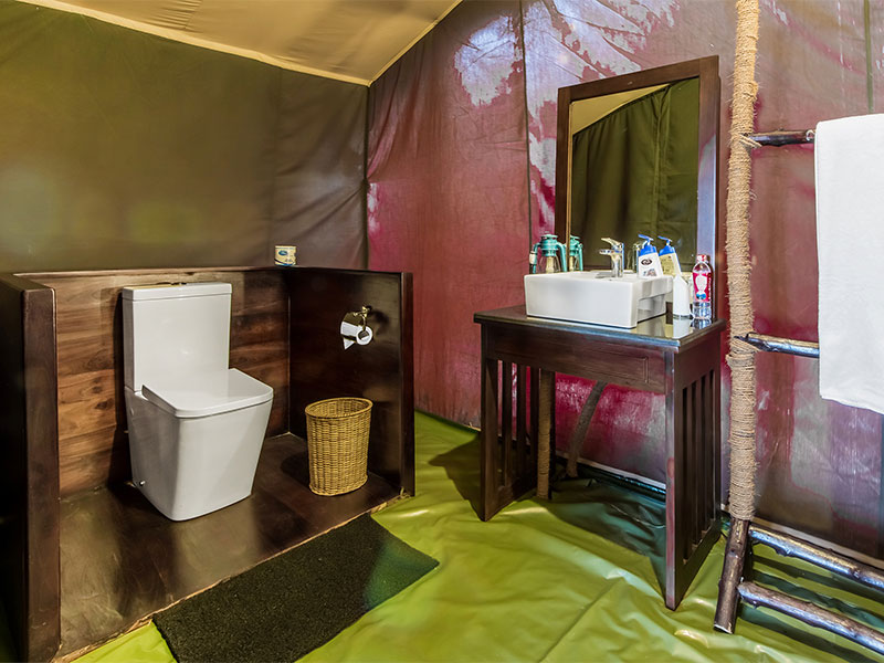 Alle tenten zijn voorzien van airconditioning, ventilator, zitje, veranda en een en-suite badkamer.