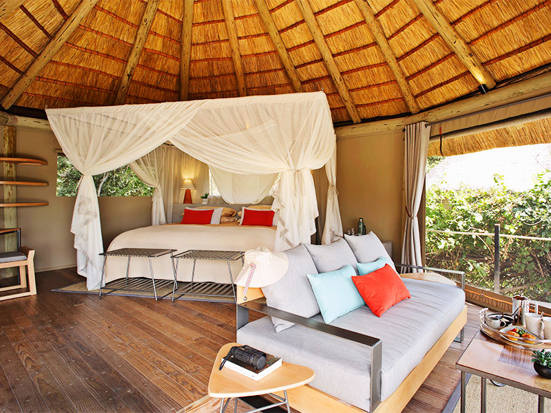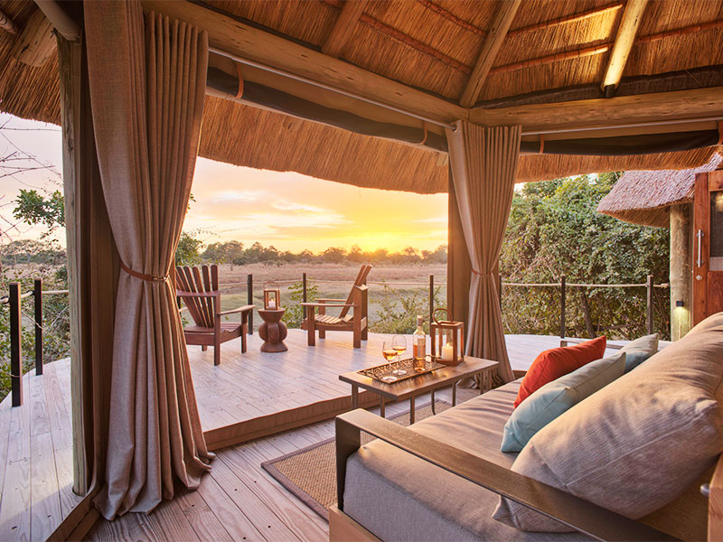 De lodge beschikt over 8 Luxury Suites en 2 Deluxe Suites: klassiek/moderne chalets met een rieten dak, voorzien van alle gemakken die u zich wenst. Elk chalet heeft een eigen privé veranda met uitzicht op een zijstroom van de Luangwa Rivier die heel veel dieren aantrekt. Alle chalets zijn hoog gelegen en verbonden met een loopbrug-netwerk naar het hoofdgedeelte van de lodge. Rond het bed hangt een klamboe. Er is airconditioning en een ventilator. De badkamer heeft een douche, bad en toilet.