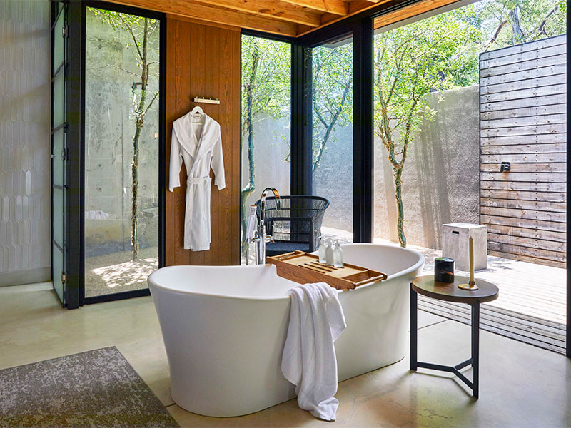 Uw suite is zeer ruim en luxueus ingericht met een privézwembad (plunge pool), een groot terras, een aparte lounge met open haard, airconditioning en een minibar. De slaapkamer beschikt over een kingsize bed en een en-suite badkamer met ligbad, dubbele wastafel en zowel een binnen- als buitendouche.