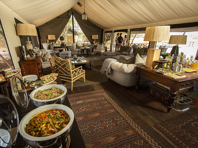 Het kamp is gebouwd in een klassieke jaren 1950-stijl. Het gezamenlijke gedeelte van Little Machaba beschikt over een restaurant, bar, lounge en bibliotheek. Verder heeft het kamp een klein zwembad en een kampvuur.