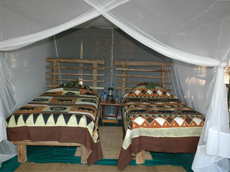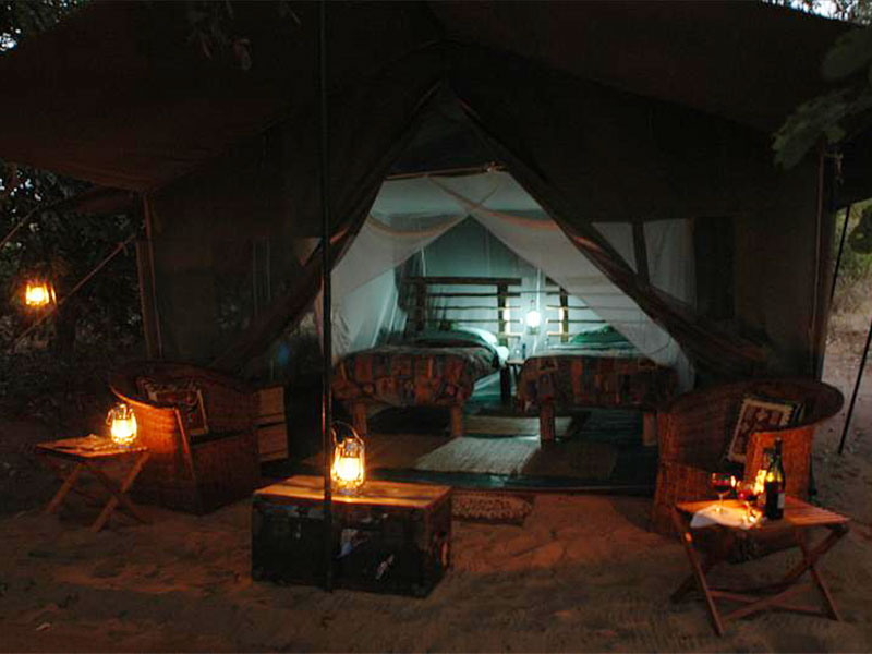 Little Vundu wordt gedeeld door een kanaal waar een voetbrug overheen ligt: de tenten staan aan de ene zijde en de diner tent aan de andere. De grote tenten (4 x 5 m) hebben aparte bedden, een open lucht badkamer met ‘bucket shower’ en een toilet.