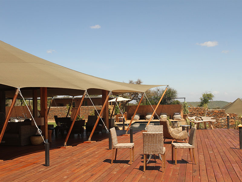 De algemene ruimten van Loisaba Tented Camp zijn voorzien van een grote open eethoek, een aparte open lounge en bar, een groot houten terras om buiten te eten, te ontspannen en te genieten van het uitzicht, en een heerlijk zwembad.
