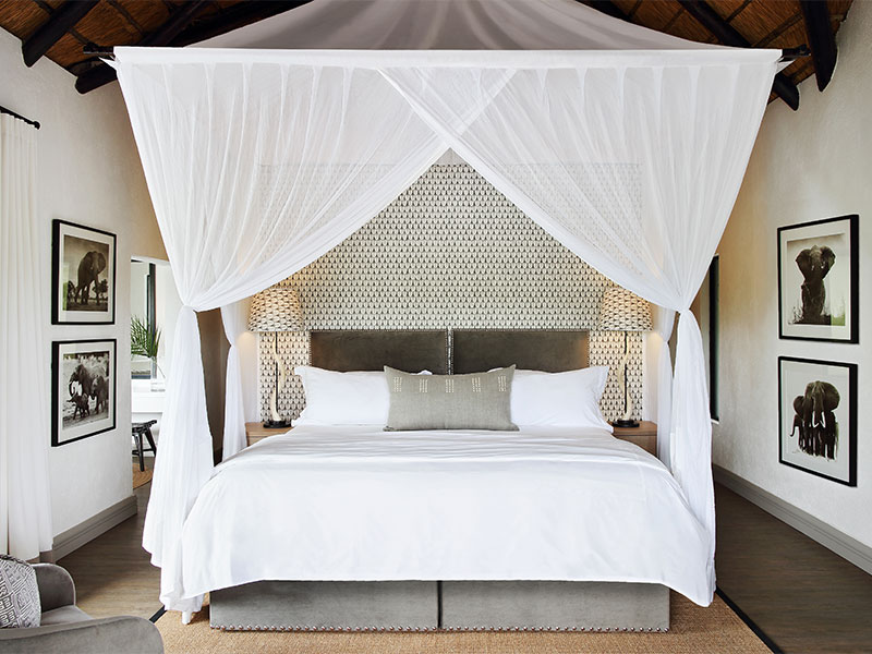De 3 exclusieve suites zijn luxe en elegant ingericht en hebben een en-suite badkamer en een ruime lounge met openslaande deuren naar een privé veranda met verwarmd zwembad aan de Sabi rivier.