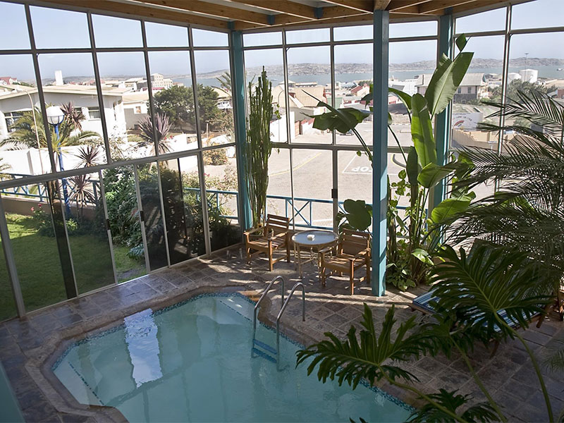 Het hotel heeft receptie, lounge, een goed restaurant met prachtig uitzicht op de baai van Lüderitz, bar, verwarmd binnenzwembad en een sauna. Tevens organiseert het hotel verschillende dagexcursies, boottochten etc. welke te boeken zijn bij de receptie.