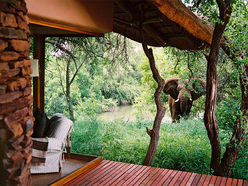 Deze Lodge is uitsluitend op exclusive use te gebruiken. De 10 schitterende suites met glazen wanden hebben een open haard, plafond ventilatoren, airconditioning, koffie- en theefaciliteiten en een kluisje. De badkamer is voorzien van vloerverwarming, badjassen en slippers, een föhn, een Victoriaans bad en zowel een binnen- als buitendouche. Buiten heeft u een grote overdekte veranda met een prachtig uitzicht.