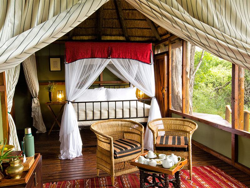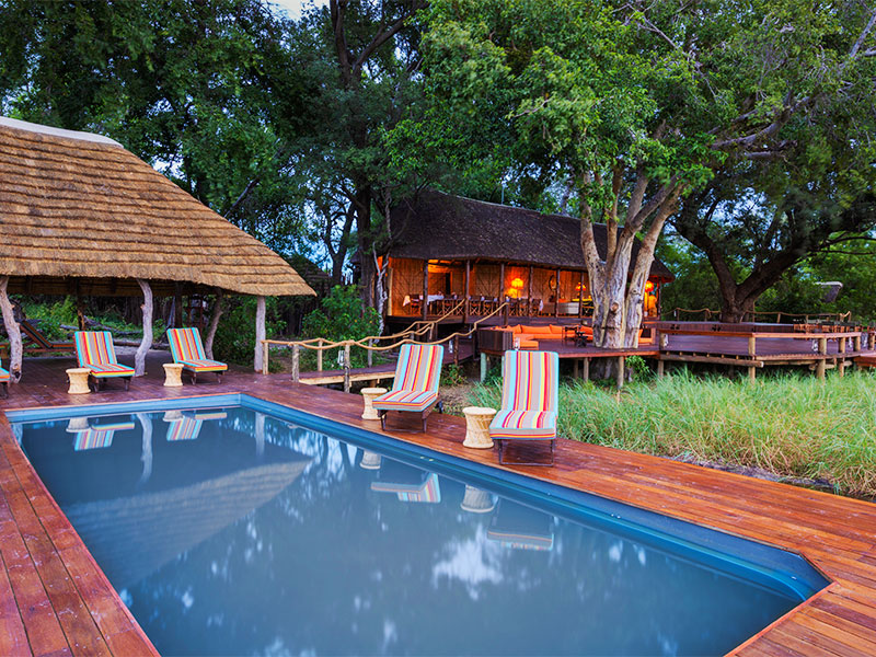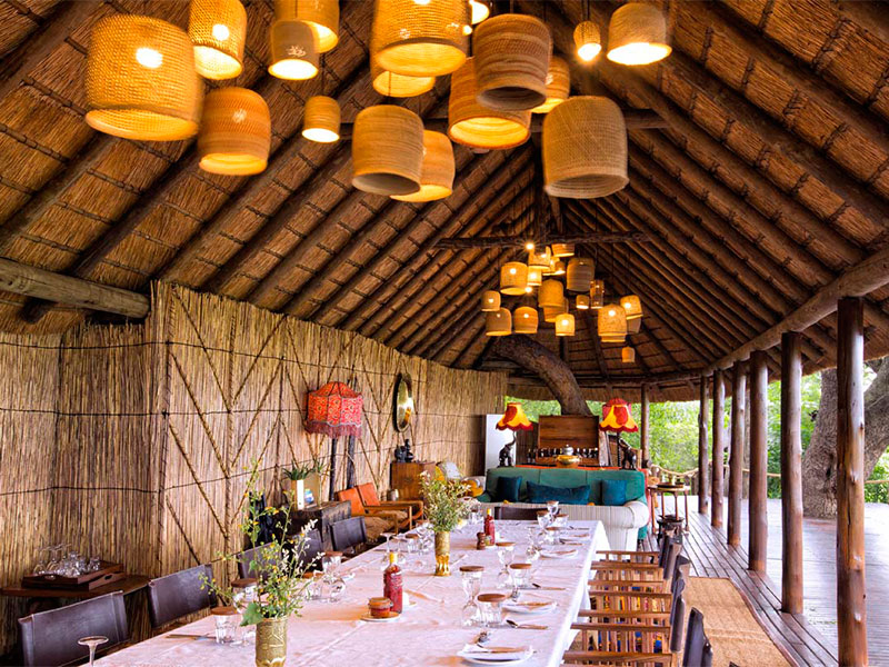 De lodge is gebouwd van traditionele materialen en biedt een grote centrale lounge, een kleine bibliotheek, een openluchtbar, een curiosa winkel, een grote veranda met uitzicht op de permanente lagune en een verfrissend zwembad.