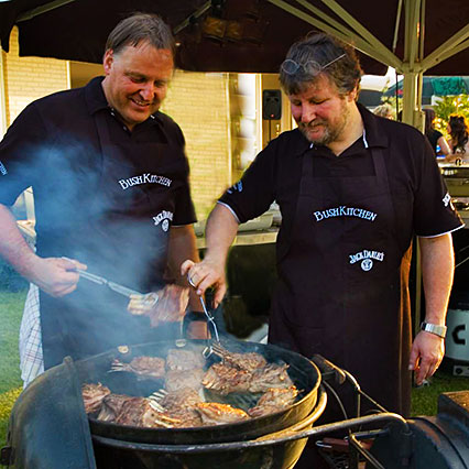 Harm-Jan Bloem en Marcello Pacenti zijn al jarenlang goede vrienden en hebben beiden hun leven lang al een passie voor de Afrikaanse braai (barbecue). Zij kunnen een fantastische Afrikaanse braai voor u organiseren bij Uitspanning de Notenboom in Beesd, bij u thuis of op een andere locatie (informeer naar de mogelijkheden). Tevens geven zij gezamenlijk diverse workshops in de BBQ Studio van BushKitchen in Kockengen.