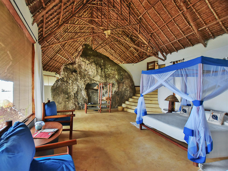 Het kamp bestaat uit 9 cottages in traditionele stijl die van alle gemakken voorzien zijn en een prachtig uitzicht hebben over Lake Victoria met pittoreske dhows die op het meer zeilen. Voor bruidsparen is er een aparte bruidssuite.
