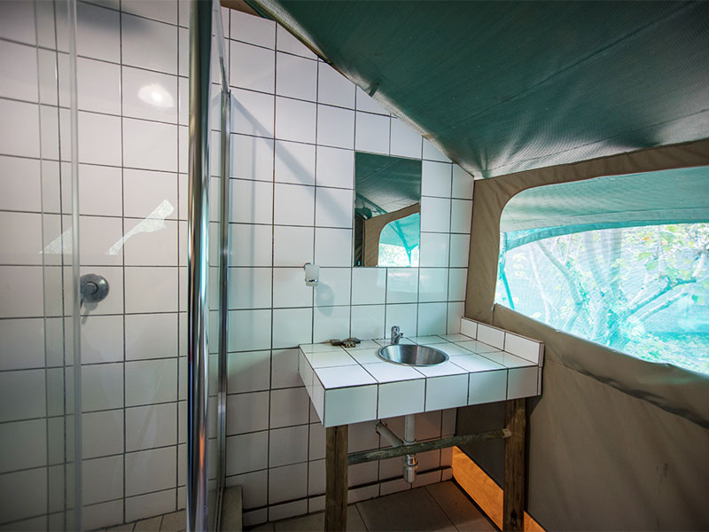 - Chalet: met elektra, airco, koelkast en en-suite badkamer