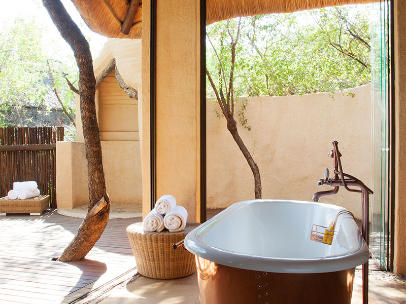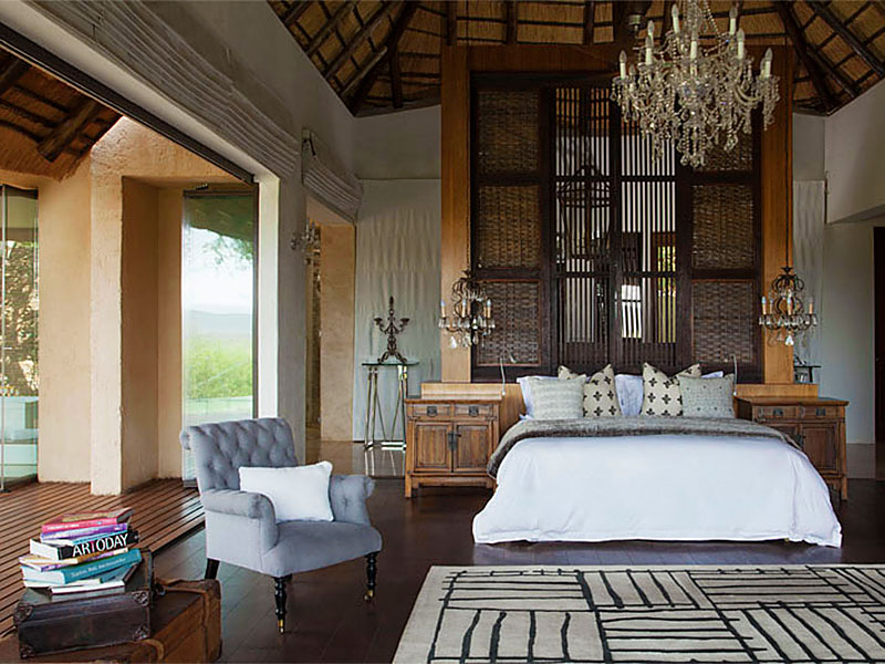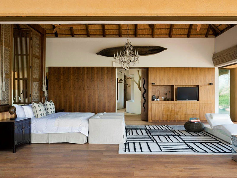 De lodge bestaat uit vijf unieke openlucht suites, zorgvuldig op afstand van elkaar om absolute privacy te bieden. Ze omvatten: twee premier suites (Ngwedi en Lesedi), een familie premier suite (Sephiri) en twee presidentiële suites (Metsi en Molelo). Alle suites hebben glazen schuifwanden van vloer tot plafond, die uitkomen op een privé terras en zwembad. De presidentiële suites beschikken tevens over een keuken en een eethoek, een studeerkamer, een inloopkleedkamer en een gastenbadkamer.