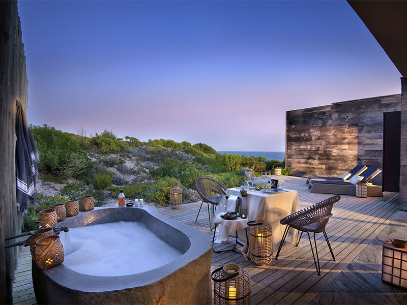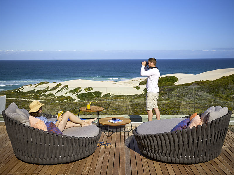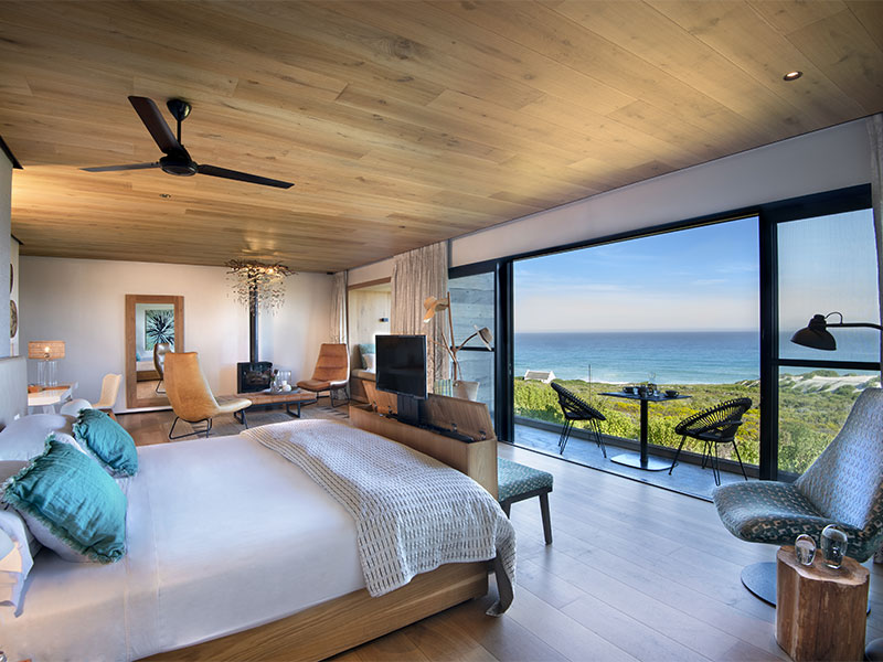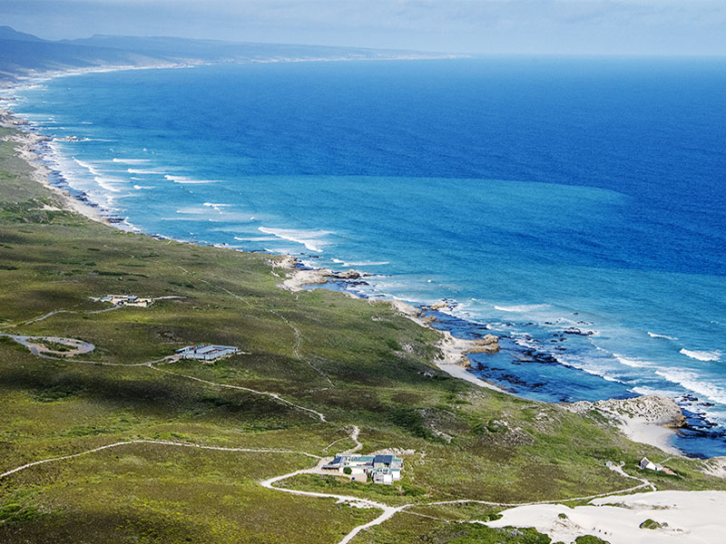 Omringd door zachte zandduinen, weelderig fynbos en de eindeloze oceaan, biedt deze eco-vriendelijke lodge u een serene ontsnapping aan de dagelijkse drukte. De moderne architectuur met grote panoramische ramen nodigt de natuur naar binnen en trakteert u op adembenemende uitzichten.