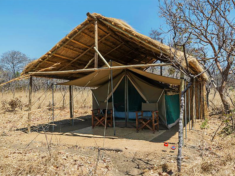 Dit semi-luxe mobiele kamp ligt op een kleine heuvel met uitzicht op een grote open overstromingsvlakte (Dambo), met daarachter de Kafue rivier.