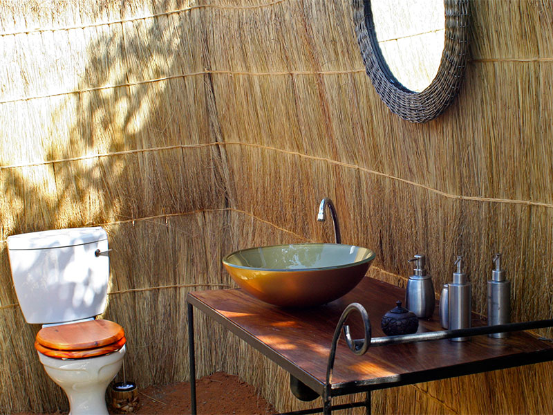 Het kamp is voorzien van alle nodige faciliteiten, waaronder een badkamer onder de sterrenhemel, buitendouche en toilet. Verlichting middels petroleumlampen.