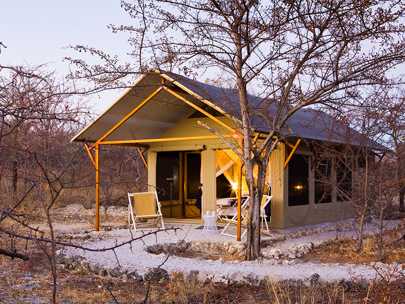 Met haar ligging op slechts 8 km van de Von Lindequist Gate aan de oostkant van het Etosha National Park, is Mushara Bush Camp een ideaal uitgangspunt voor het verkennen van dit deel van het park.