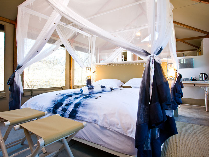 De 16 en-suite tenten zijn gemaakt van een combinatie van canvas en lokaal zandsteen. Elke tent heeft grote glazen ramen, een ruime badkamer met douche en een eigen veranda.