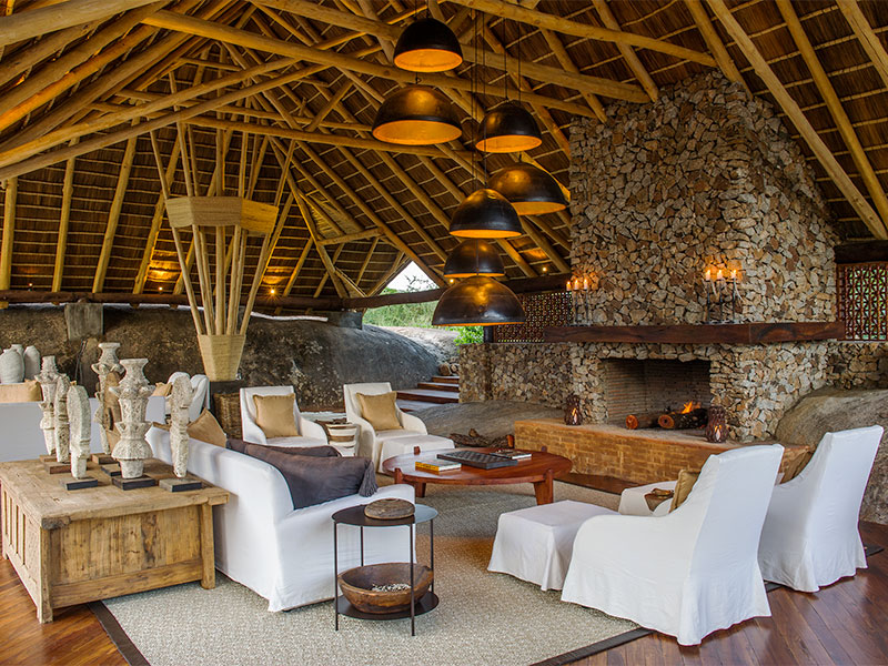 Het interieur van de Mwiba Lodge is een kunstzinnige combinatie van zowel traditionele als moderne designelementen, geïntegreerd in de kolossale rotsblokken van het landschap. De stijlvolle lounge kijkt uit over de rijkdom van het golvende landschap daarbuiten. Een niveau lager dan het koele zwembad kunnen gasten genieten van de natuur en van de wilde dieren die uit de bronnen van de vallei komen drinken.