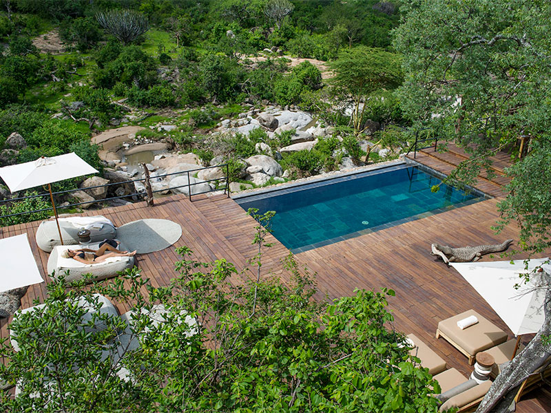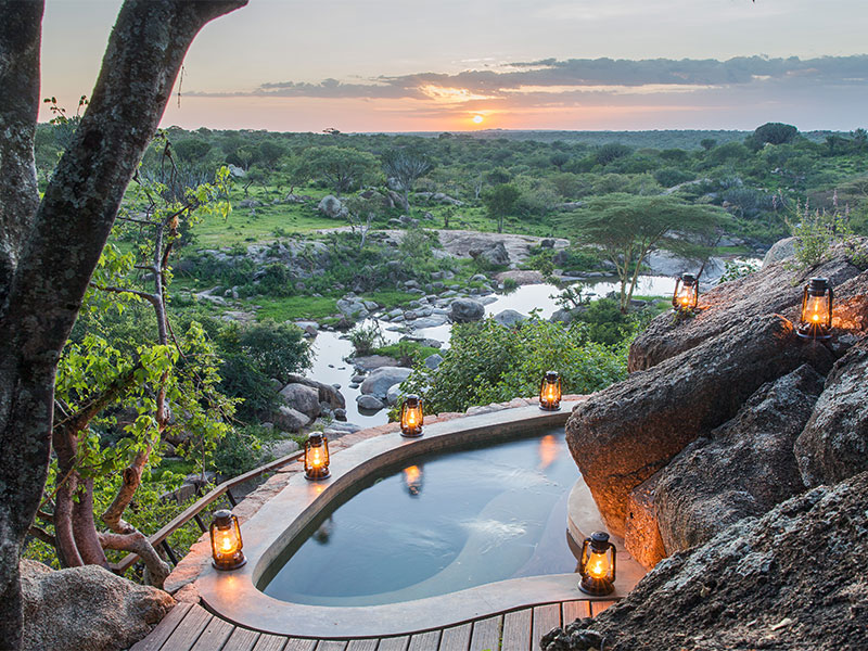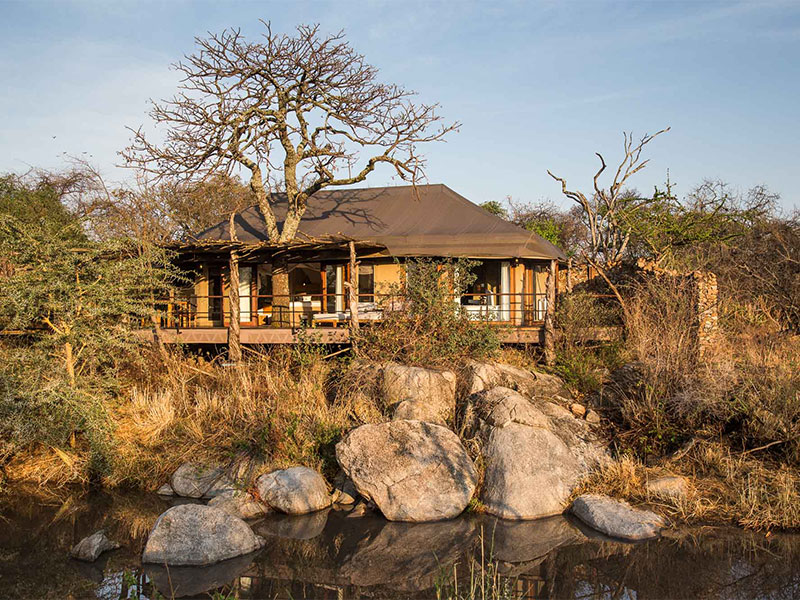 Mwiba Lodge is een luxueus tentenkamp met uitzicht op een rotsachtige kloof aan de rivier de Arugusinyai, gelegen in een privéreservaat van meer dan 20.000 hectare dat grenst aan de zuidelijke Serengeti.