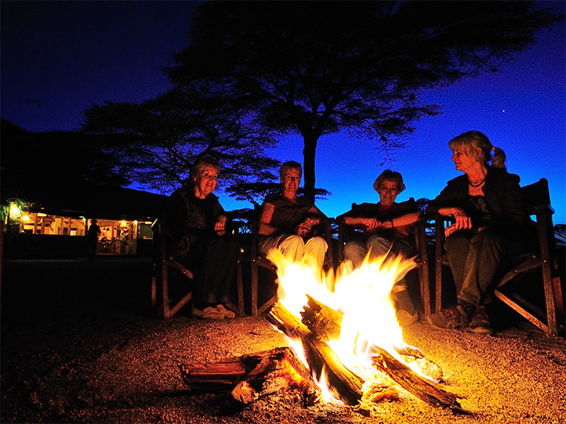 ’s Avonds kunt u bij het kampvuur genieten van de typisch Afrikaanse sfeer en, als u dat wilt, ervaringen uitwisselen met andere gasten.